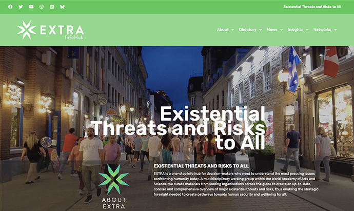 After three years of preparatory research under the leadership of Bob Horn and Jo Nurse, in August, the EXTRA Working Group went public by launching the EXTRA InfoHub website as a subset of the WAAS website. The project, which is chaired by Thomas Reuter, aims to become a one-stop info hub for decision-makers who need to understand the most pressing issues confronting humanity today. The website offers a carefully curated selection of the most important information on existential threats, seeking to overcome fragmentation and misinformation by drawing on reliable sources from across a wide spectrum of primary knowledge producers. The EXTRA team includes WAAS Fellows David Harries and Michael Marien, Junior Fellow Lorenzo Rodriguez and Ortwin Renn, Director of Systemic Risk Research in Potsdam. For more information contact: extra@worldacademy.org